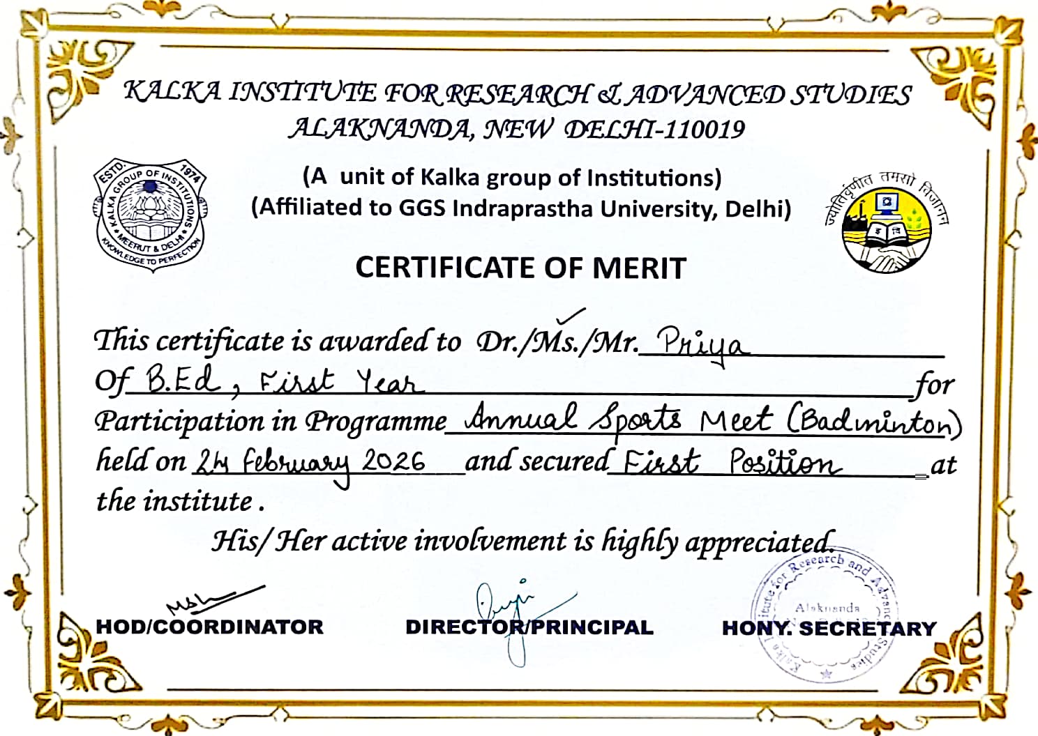 KALKA INSTITUTE FOR RESEARCH & ADVANCED STUDIES (B.PHARMA & D. PHARMA)